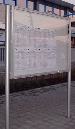 Venkovní vitrína vhodná do jakýchkoliv podmínek, odolná proti vandalismu a povětrnostním podmínkám.